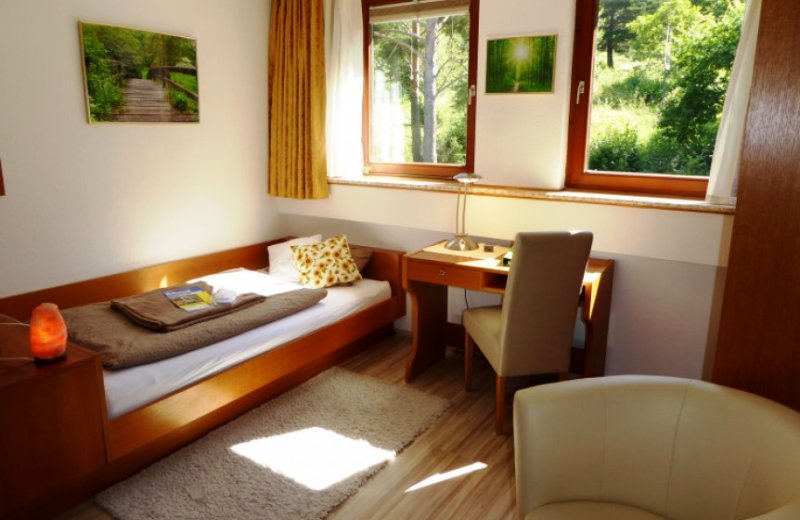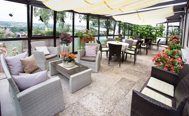 Das Haus besitzt ein sehr schönes, stilvolles und gemütliches Ambiente mit 2 großen Wintergärten, herrlichem Garten mit Liegewiese mit toller Aussicht, 16 schöne EZ / DZ mit Du / WC, Schwimmbad und Wellness-Sauna.